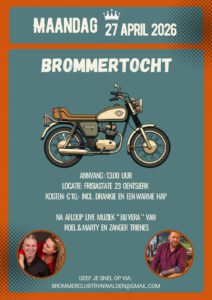 Voor alle merken bromfietsen en 50cc motoren, inschrijven vanaf 9.30 uur, start toerrit om 12.00 uur.