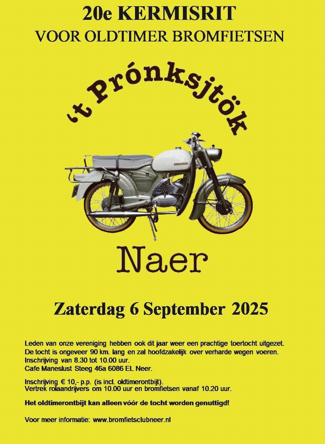 Inschrijfgeld €10,- incl. Brommerontbijt.