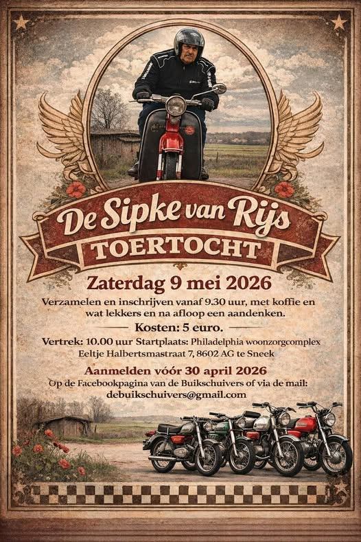 de Duivenakker 76 Aarle Rixtel De Duivenakker 76, Aarle Rixtel, Noord-Brabant, NederlandGouwe Ouwe Rit Aarle-Rixtel. Toertocht van ongeveer 80 km voor bromfietsen, solexen en snorfietsen van 20 jaar of ouder. Inschrijving van 09.30 uur tot 10.30View More