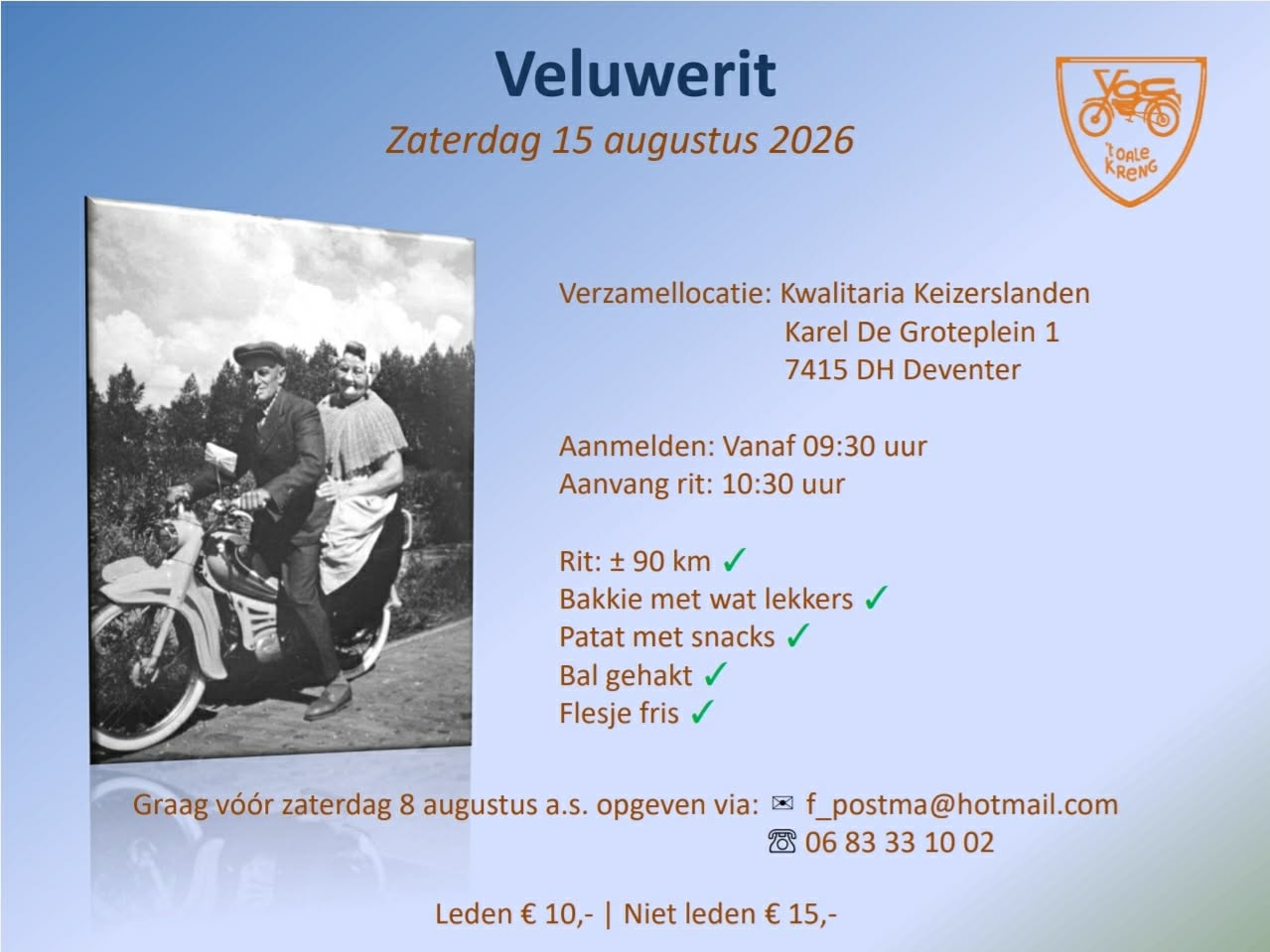Holder De Polder Rosmalen. Toertocht van ongeveer 80 km voor bromfietsen, solexen en snorfietsen van 20 jaar of ouder. Inschrijving van 09.30 uur tot 10.30View More