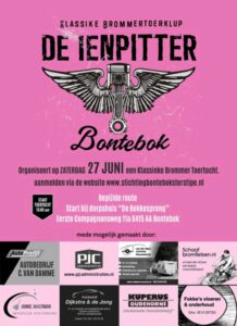Zaterdag 28 juni 2025 organiseert de Klassike brommertoerklup ‘de Ienpitter’ hun jaarlijkse toertocht in Bontebok...